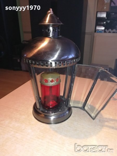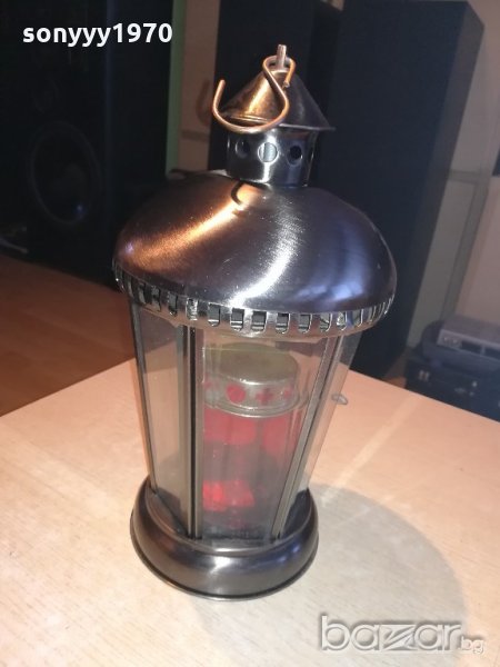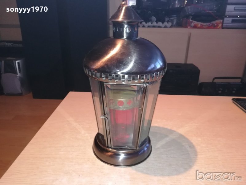 иноксов фенер с стъкла-за свещ-внос холандия-34х19см