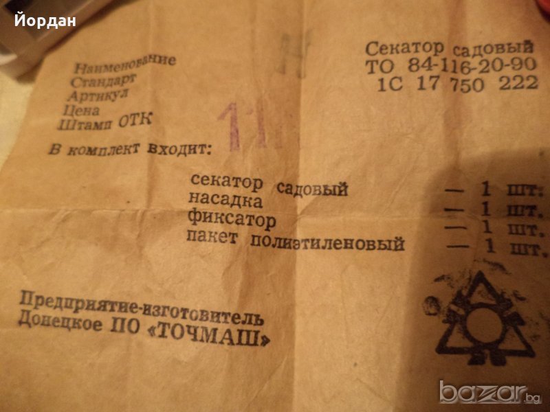 Градинска ножица руска употребявана с рез. нож - 15 лв