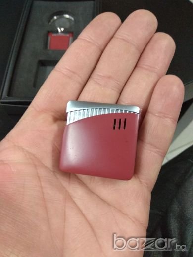 Чисто нов, Дамски подаръчен комплект от запалка и ключодържател в червен цвят. Към комплекта получавате безплатно подарък обеци - треперужки!