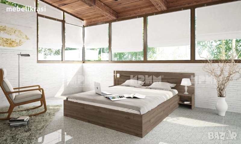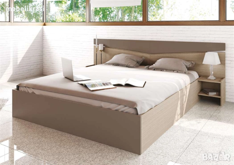 Самостоятелно легло с табла и две нощни шкафчета. Окомплектовано с повдигащи амортисьори. Подматрачното пространство може да се използва за прибиране на спалното бельо и завивки.