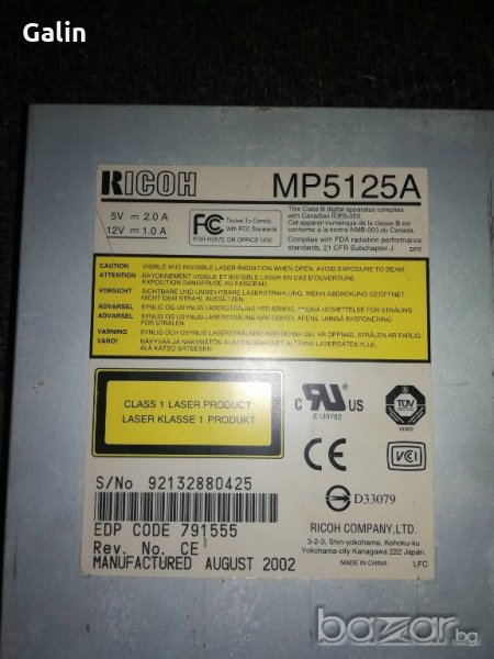 Продавам горе посоченото DVD / флопи Ricon MP5125A.