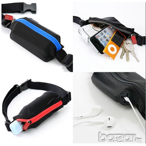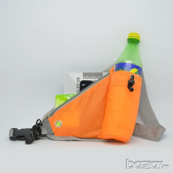Спортната чантичката е специално направена за спортуване бягане,колоездене и др. Вътре може да носите най необходимото: телефон, портфейл, ключове, вода , козметика и др) има и отделение за бутилка с вода вътрешната страна на която е от материя която задържа температурата студена/топла, а частта на чантичката от към гърба е със дишаща материя.Има и специална дупка за слушалки