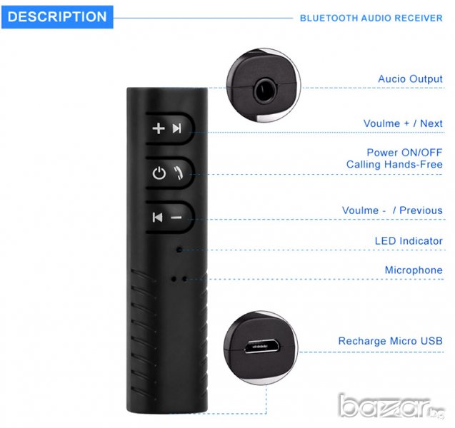 ANBES мини Bluetooth приемник/аудио трансмитер 3.5 мм жак 9 лв. → Обява 20933792
