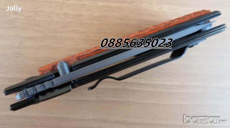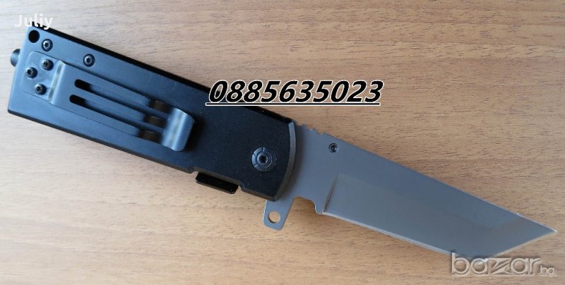 нож , снабден е с подпружинен механизъм,пластина за блокиране на острието в отворено положение, резервен щифт за отваряне с дясна или лява ръка.