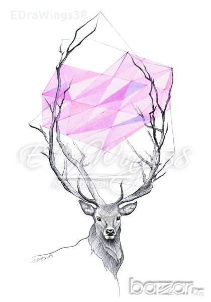Картичка "Dear" / елен, животни, сърце, любов, розово → Обява 20950446