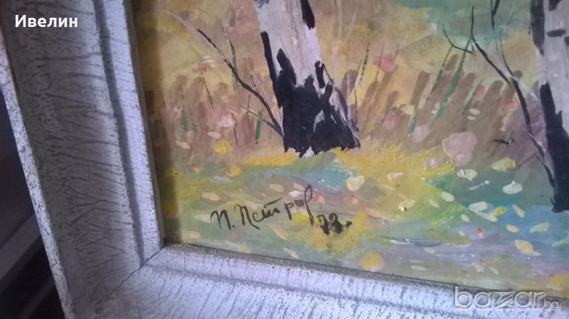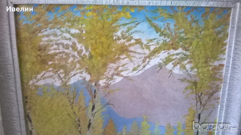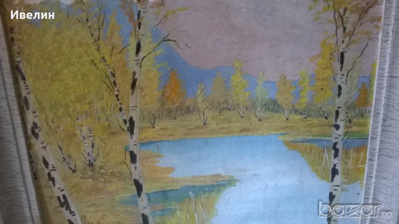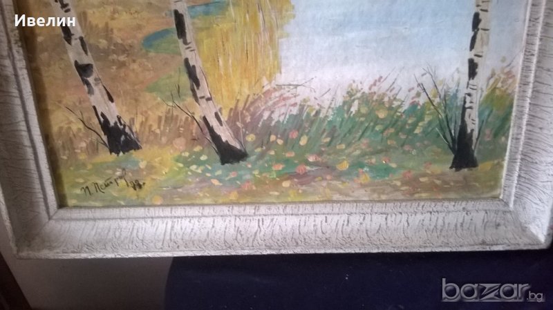 картина-пейзаж.масло на картон,подписана, дървена рамка с размери 73см/53см,вътрешни 65см/44см.