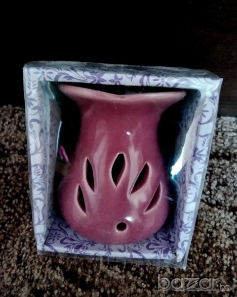Лампа за аромотерапия. В отвора се поставя светичка, а отгоре се капват няколко капки етерично масло.Чисто нова е. Може да се използва и само като свещник. Опакована е, т.е. подходяща е и за подарък.