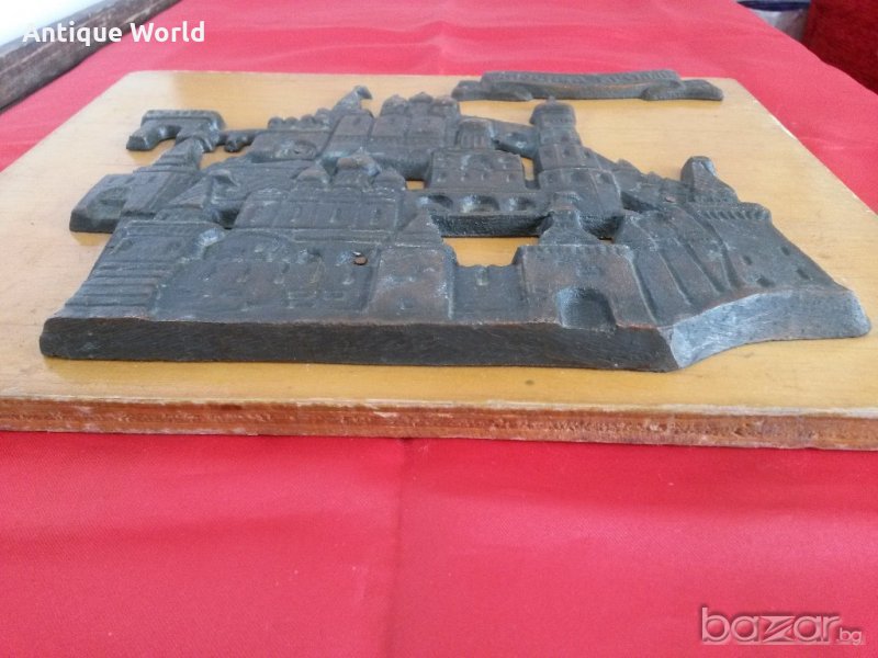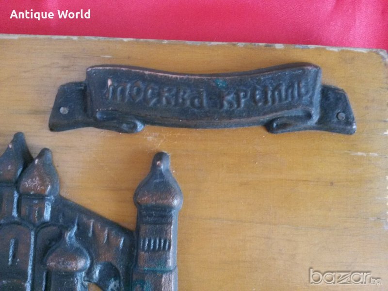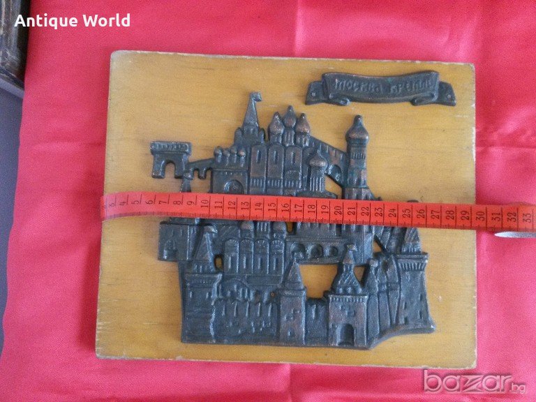 Красива Стара Масивна Соц Картина, Пано МОСКВА, КРЕМЪЛ , Дърво и Метал /Мед .Състоянието е видно.