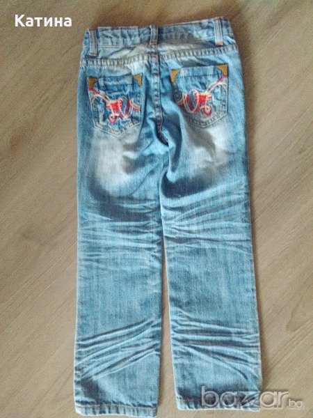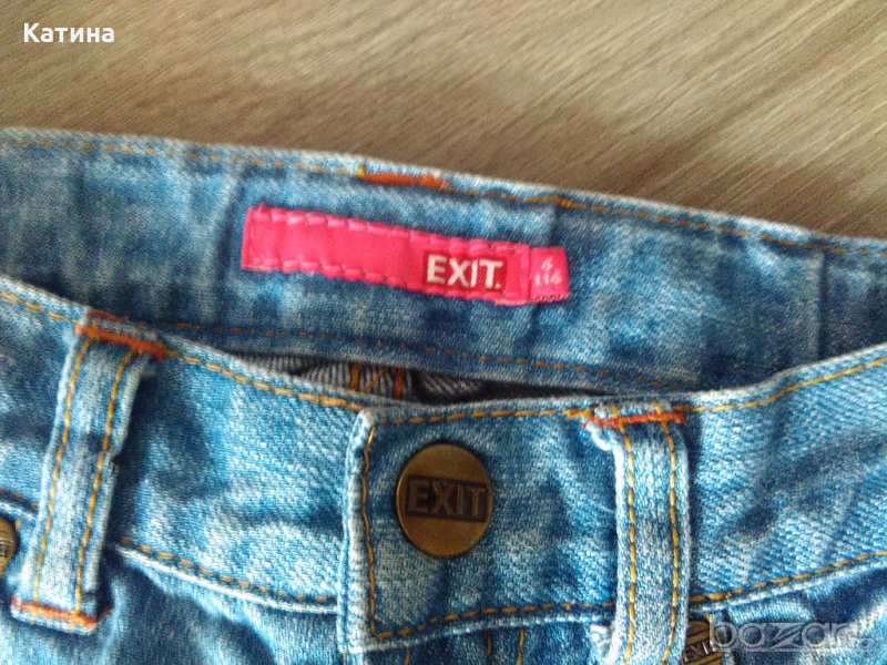 Еxit красиви детски дънки с лого на капсите и красиви шевици на задните джобове.Възможност за коригиране в талията. Размер на етикета 6 год.,116см.Обличани веднъж.Без следи от употреба. Към тях нежни диадемки в подходящи цветове.