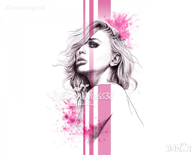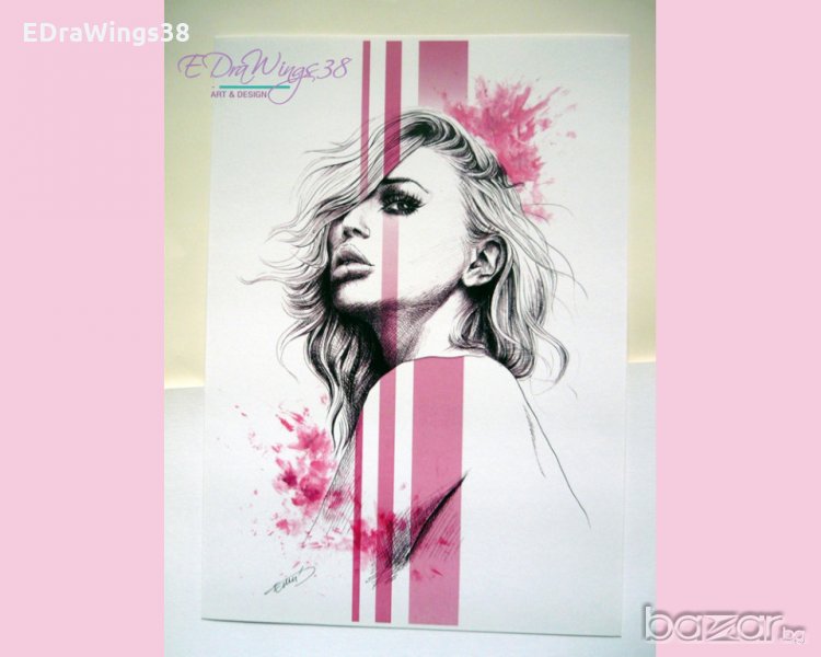 Картина "Розово" / арт принт, рисунка, жена, портрет → Обява 21002338