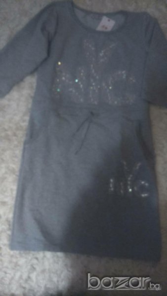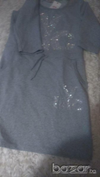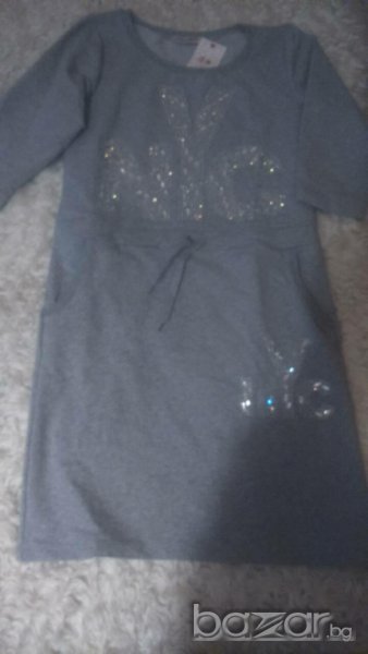 Чисто нова рокля от памучно трико с джобове и апликация.Отговаря на размери М/Л