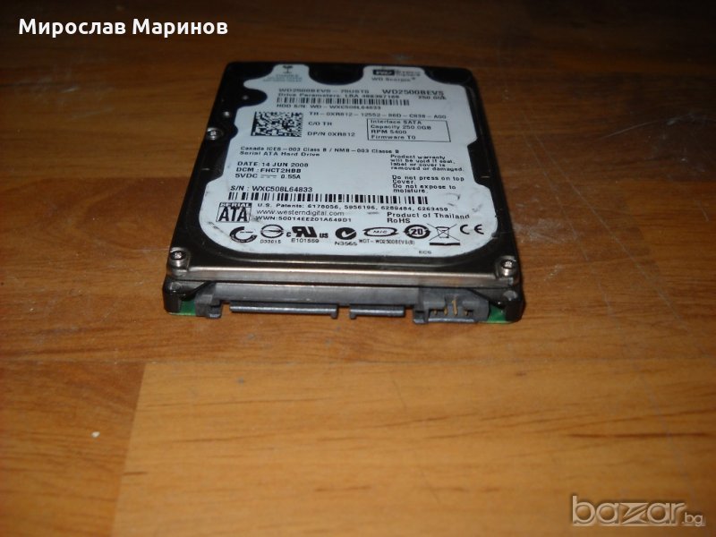 5.3.хард диск за лаптоп WD 2500 Western Digital 250 GB -SАTA ,2,5 “.Ползван 1 месец и 17