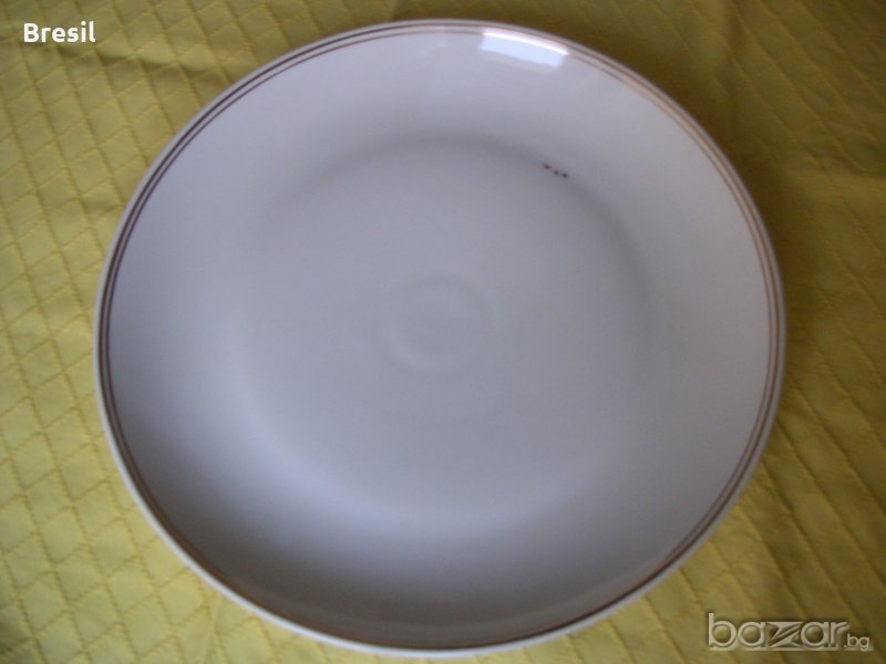 2/ Бяло със златен кант, елегантна изчистена кръгла форма d=30 см – 19 лв