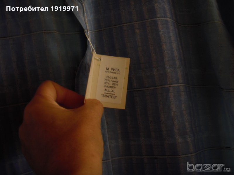 нова мъжка риза с къс ръкав, 70%памук,30%лен, размер М, ширина рамене 48см, ширина подмишници55см, дължина 73см - 8лв.