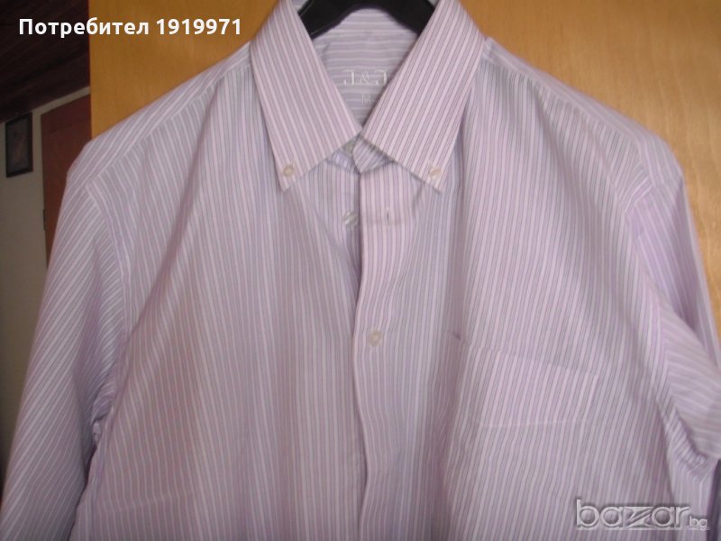 нова мъжка риза с дълъг ръкав 65%памук, 35% полиестер, размер М ширина рамене 49см, ширина подмишници 57см, дължина 75см. 8 лв.