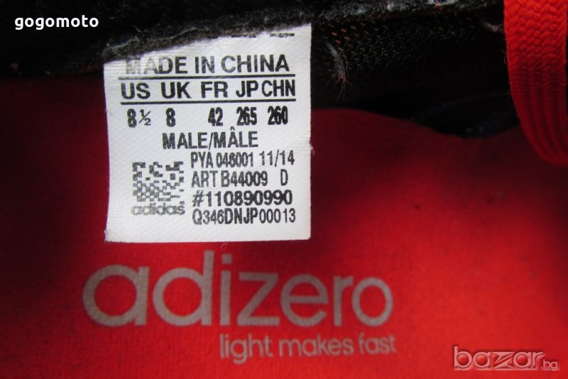 GOGOMOTO.BAZAR.BG®, adizero, light makes fast, подметка Continental Номера по етикет е EUR- 42, UK- 8, US- 8.5 , а СТЕЛКАТА измерена е 27 см. ВСИЧКИ други ОБУВКИ НА СНИМКИТЕ СА НОМЕР 41 - 42.