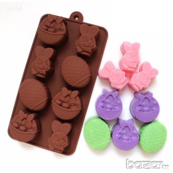 Великденски яйца яйце кошница зайче силиконов молд форма за бонбони шоколад фондан гипс декорация → Обява 21045935