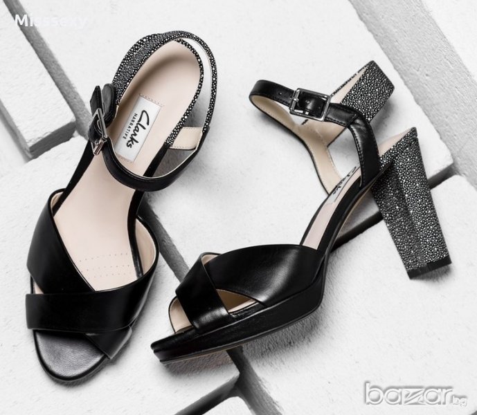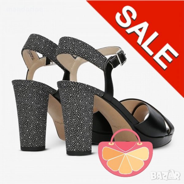 ПРОМО 🍊 CLARKS 🍊 Оригинални сандали в черно и бяло на точки от ест. кожа 38½ номер нови с кутия