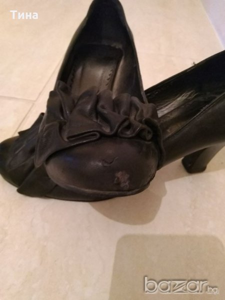 Черни обувки на ток от естествена кожа. Имат малък дефект на дясната обувка.