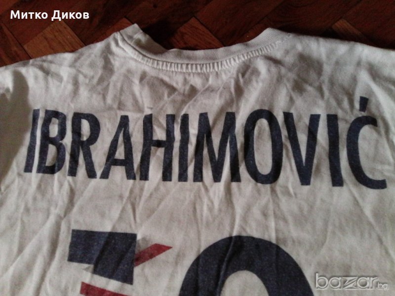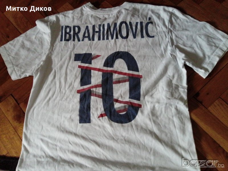 Тениската е памучна на ПСЖ-№10 Ибрахимович -размер М--отгоре додолу 52см иподмишници -69см-цветовете на снимкити изглеждат по-силни но реално са захабени и по-светли малко от фотосите и затова цената е по-ниска-изпращам по еконт с отстъпка