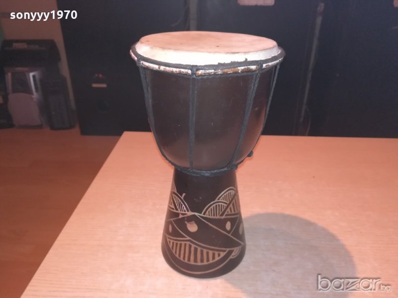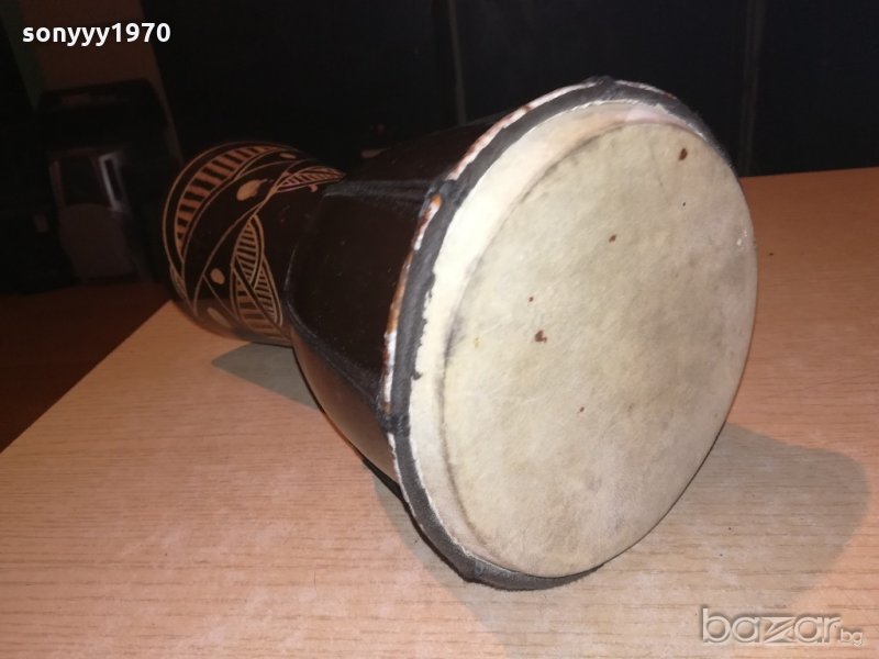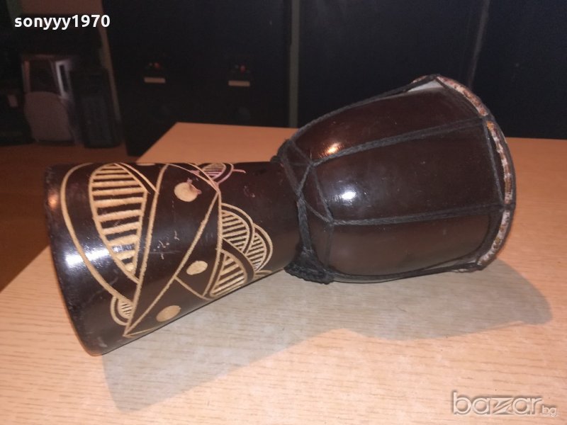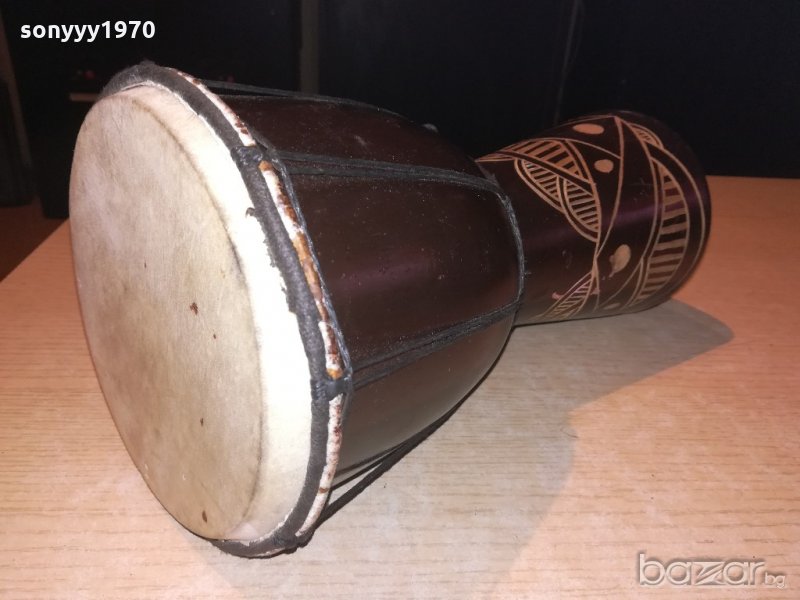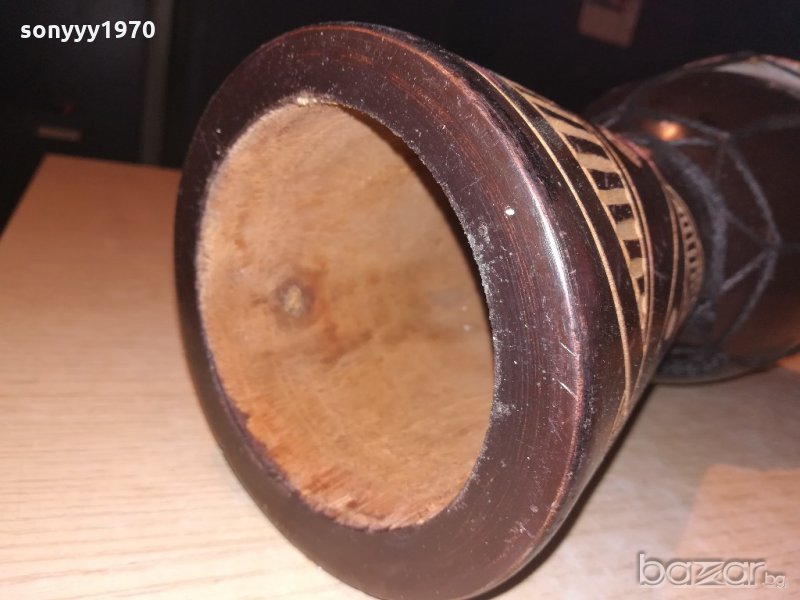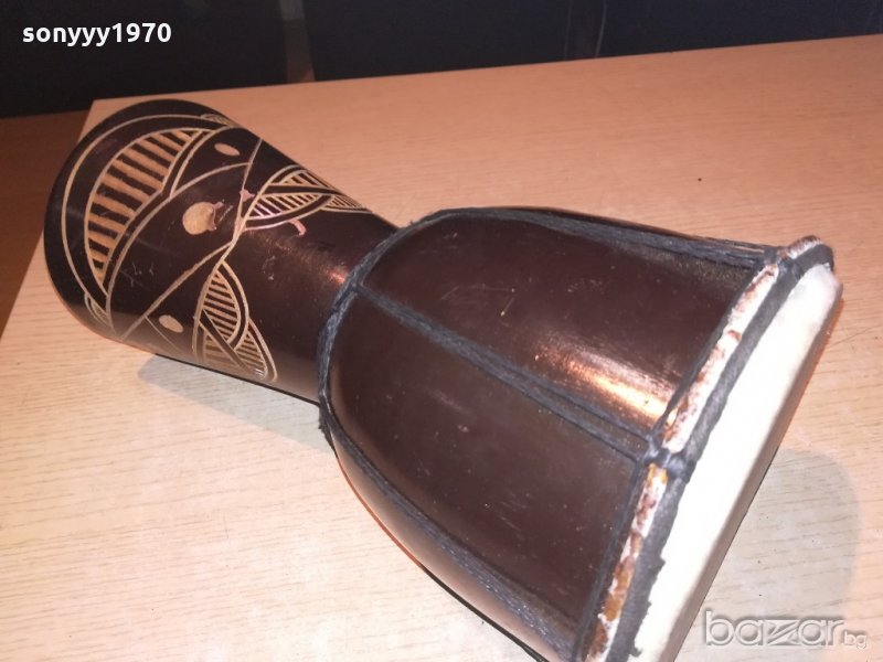 масивна тарамбука-дърво с резба-29х16см-внос швеицария