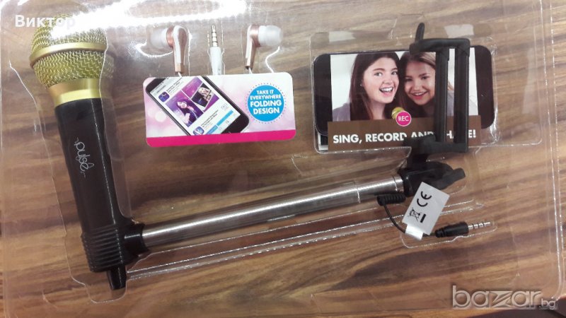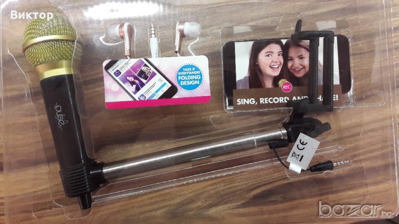 Представяме Ви този уникален комплект - микрофон, селфи стик и слушалки.