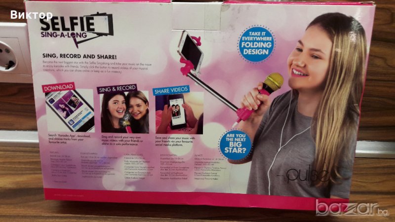 Пейте заедно любимите си песни и запишете себе си и вашите приятели с този Pulse Microphone Selfie Stick. Със