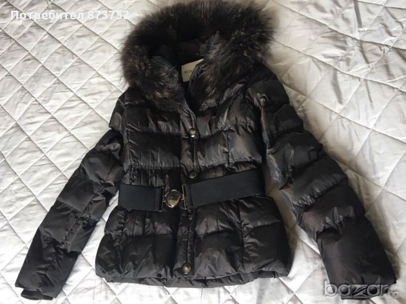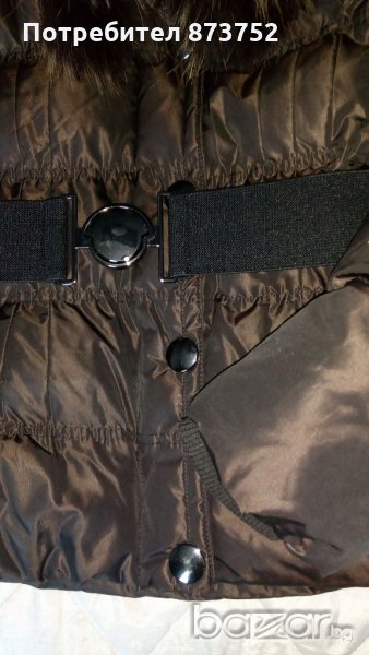 Много красиво топло яке, тъмно кафяво с дискретен блясък и богата яка от лисица, прикрепяща се с копчета.Отлично състояние.Размери- рамене 42 см., бюст 50, талия 42, ръкав 65, обща дължима 60см.
