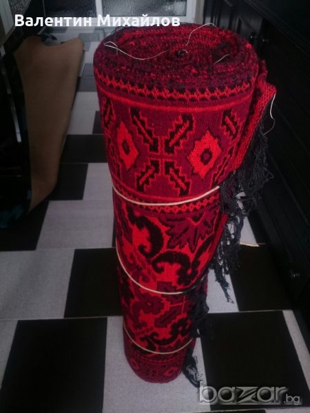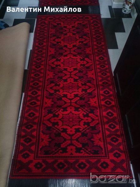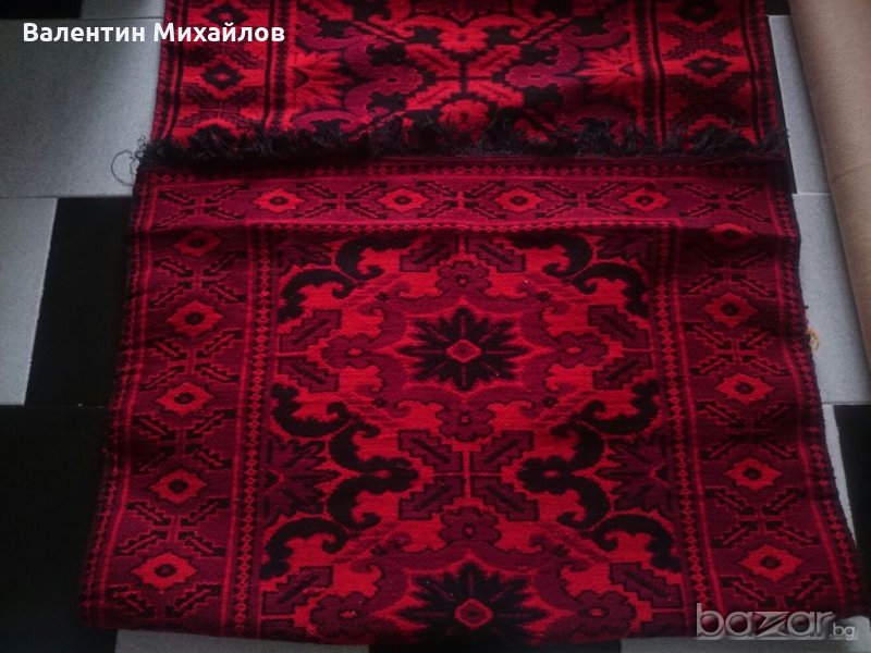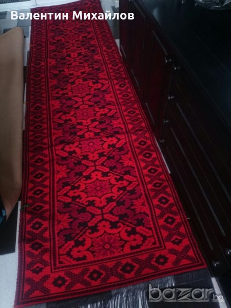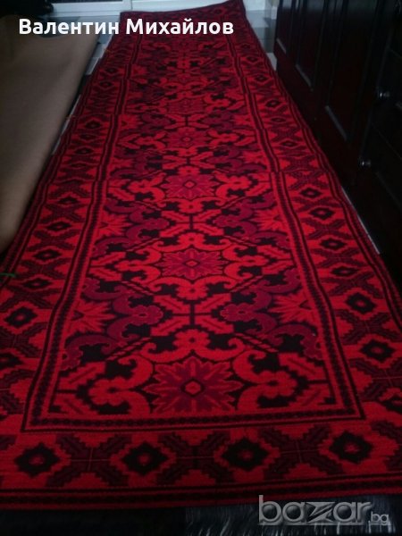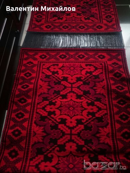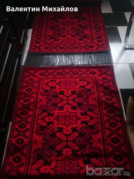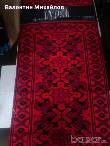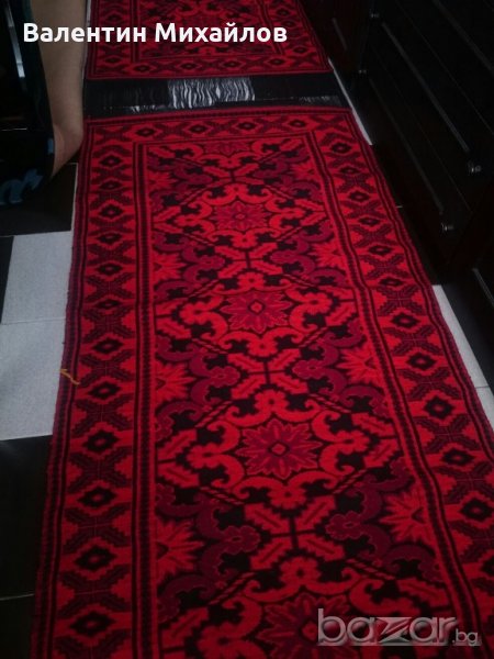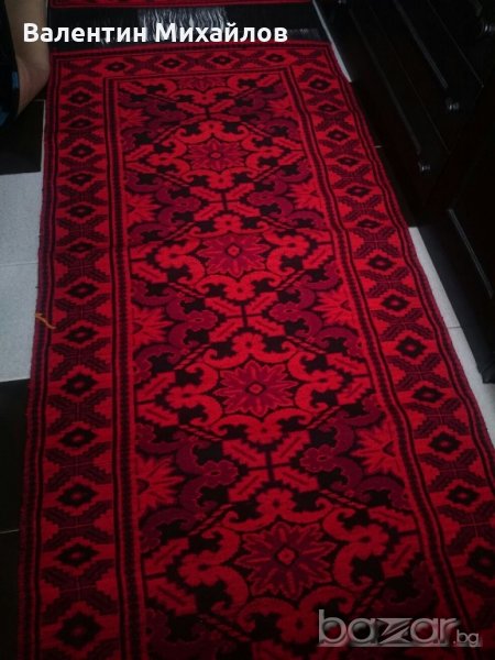 Продавам комплект нови ръчно тъкани вълнени пътеки. Цвят - червено, тъмно червено и черно. Размери - 350/90 см. - 1 бр. :