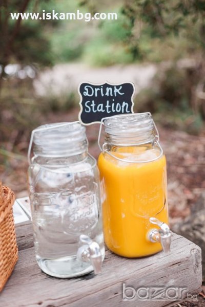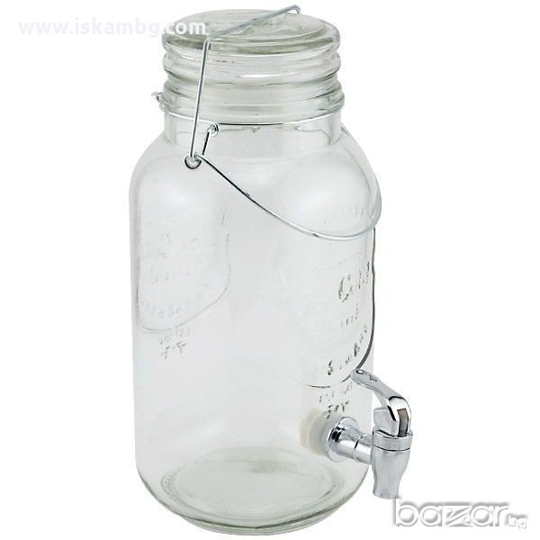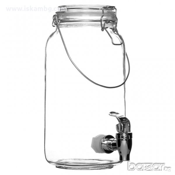 Стъклен буркан 2 л с канелка и дръжка, диспенсър за напитки - код 2 литра