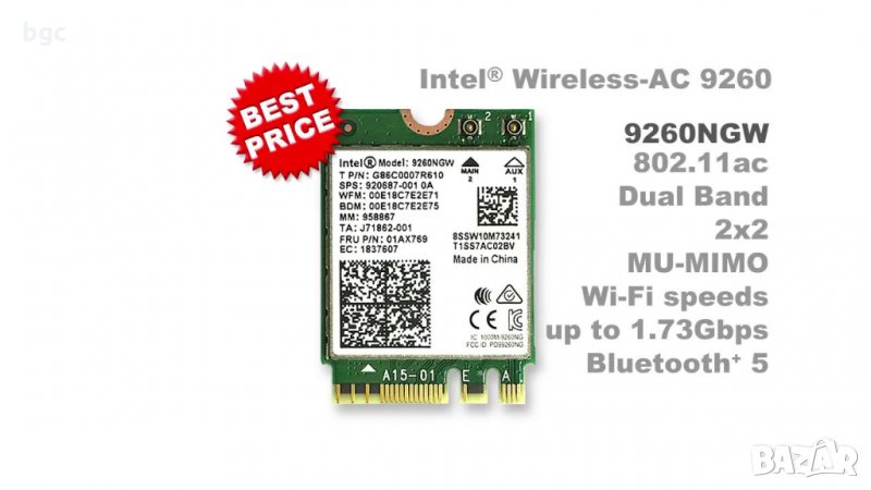 Супербързи wireless NGFF м.2 карти за безжичен интернет за лаптоп / компютри - с новият формфактор м.2 и пълна поддръжка 2.4GHz + 5GHz 802.11ac АС- новото поколение.