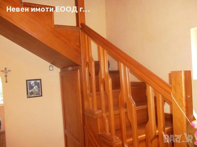 Къщата е с разгъната застроена площ от 275 кв. м.и се състои: Първият етаж включва каменна механа от 25 кв.м с антре и котелно помещение.Втория етаж има просторна разчупена дневна с трапезария, кухня - трапезария, баня с тоалетна. Веранда на две нива с барбекю и монтиран плувен басейн. Вътрешно стълбище с вита красива стълба, свързва етажите. Трети етаж - две еднакви спални от по 25 кв.м, коридор и родителска гарсониера от 70 кв.м . включваща коридор, работен кабинет, спалня, дрешник, голяма баня с тоалетна. Интериорът е в следната степен на завършеност- подовите настилки са теракот и ламиниран паркет, стените са боядисани с латекс, дограмата е ПВЦ, интериорните врати са алуминиеви, има направена вътрешна изолация.Кухнята е оборудвана с висок клас ел уреди АА. Изложението на имота е изток/запад/юг. Къщата разполага с двор от 310 кв. м., терасовиден, има външна тоалетна и чешма, пред входа на механата и мазата. Навес с под теракот и топлоизолация и покрив Венецианска щора. В двора са обособени места за отглеждане на селскостопански култури, дръвчета, цветя и зеленина. Има гараж с прокарани ВиК с топла и студена вода и ел. с трифазен ток и контакт за включване на електрогенератор, който захранва с ток целия имот.Пред гаража има паркоместа за 4 автомобила. Към имота има голям навес с тераса, от която се влиза в самия имот.