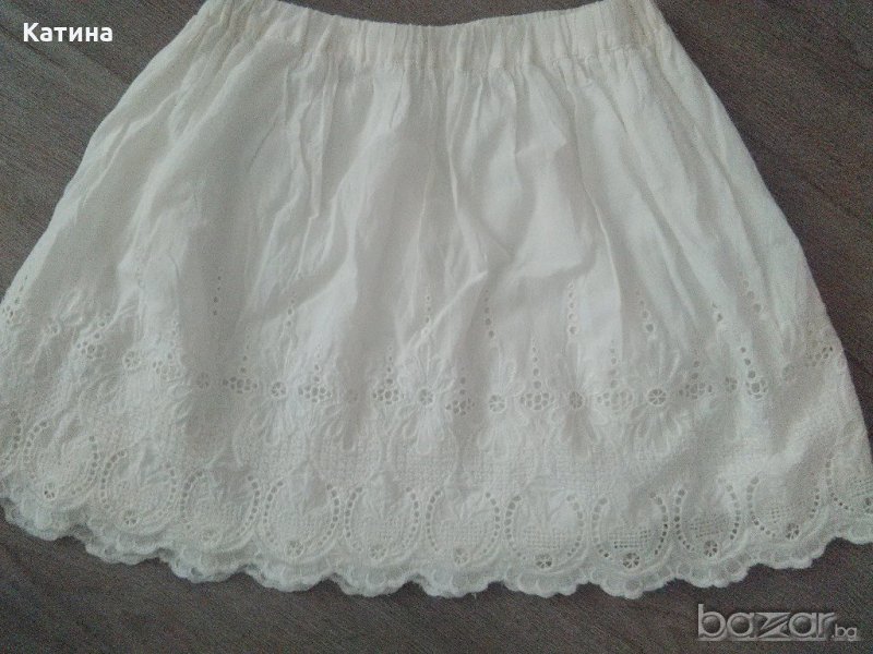 H&M флорална блузка.Много лека,100% памук материя.Възможност за коригиране в талията.Фина плетена дантелка по краищата.Размер на етикета 11-12 год.,152 см.NEW LOOK бяла поличка с подплата.Фина,100% памук материя с красива бродерия.Ластик в талията.Обличани 1-2 пъти.Като нови.