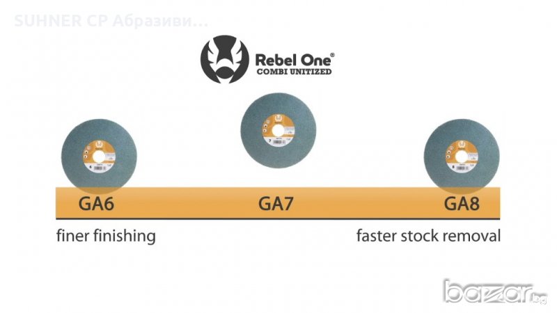 Rebel One Combi unitized е уникална и патентована комбинация от две специфични обединени колела , като цялото е нещо повече от сбора на всички части. Твърдото ядро е отговорно за безупречното шлайфане на заваръчния шев, където по-меките страни на гъвкавото колело повишават финала до най-високи нива