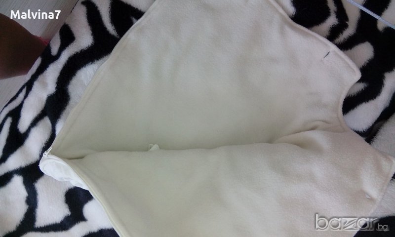 1. Бяло поларено бебешко якенце с чувалче за количка. Якенцето може да се облече отделно, а когато бебето се слага в количката или столчето за кола - да се закопчее за долната част и да стане като цяло чувалче.