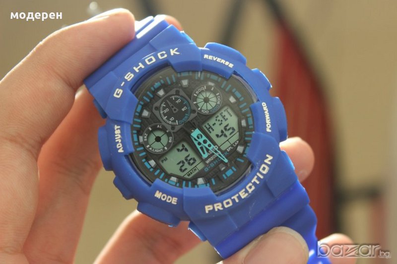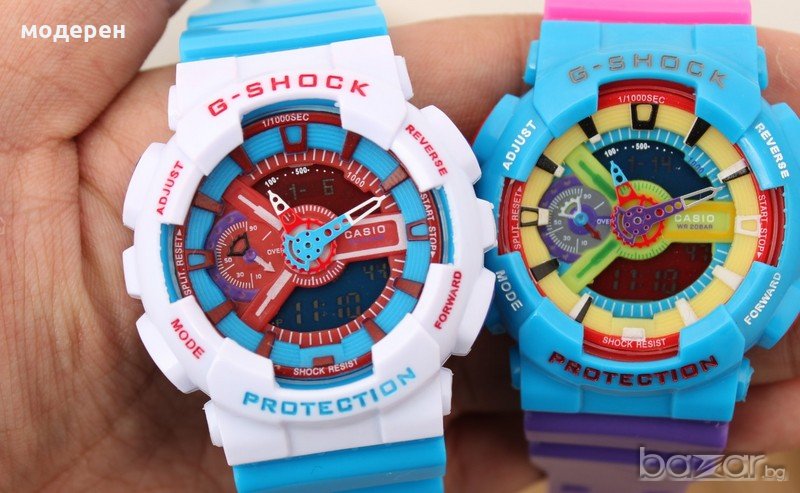 продавам спортен часовник различни модели и цветове. С 5 аларми , диодна подсветка, водоустойчив до 3 атмосфери , два часовника , хронометър , календар,световно в реме и др. Имам налични g shock ga100 - черен.бял.червен ga 110 - черен със златно, а1100