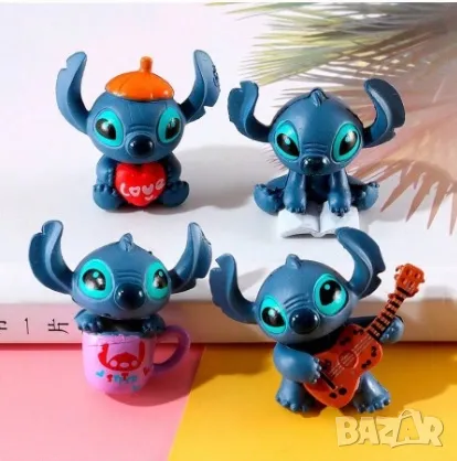 4 бр малки Стич Stitch фигурки пластмасови PVC за игра и украса торта топер фигурка → Обява 21168703