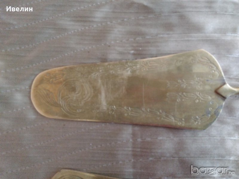 стари прибори за торта.месинг с посребрени дръжки.дължина 29см и 27см.