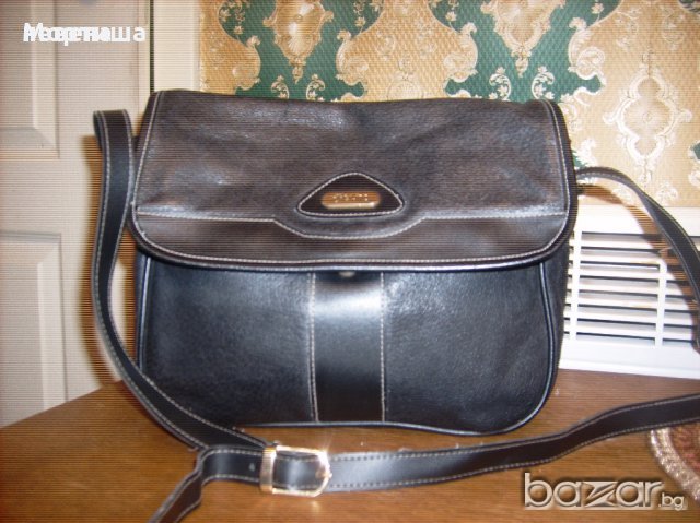 Дамска чанта PERLINA оригинална естествена кожа два нюанса черно с кафяв конец 27 на 23 см Без забележки като нова Крайна цена без бартери