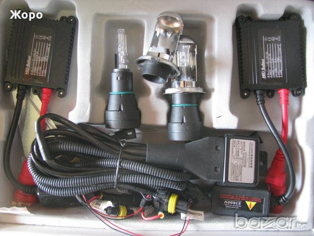 2 ксенонови крушки 35 Вата, 2 тънки баласта 35W/12V DC, кабели, болтове и инструкции за монтаж.