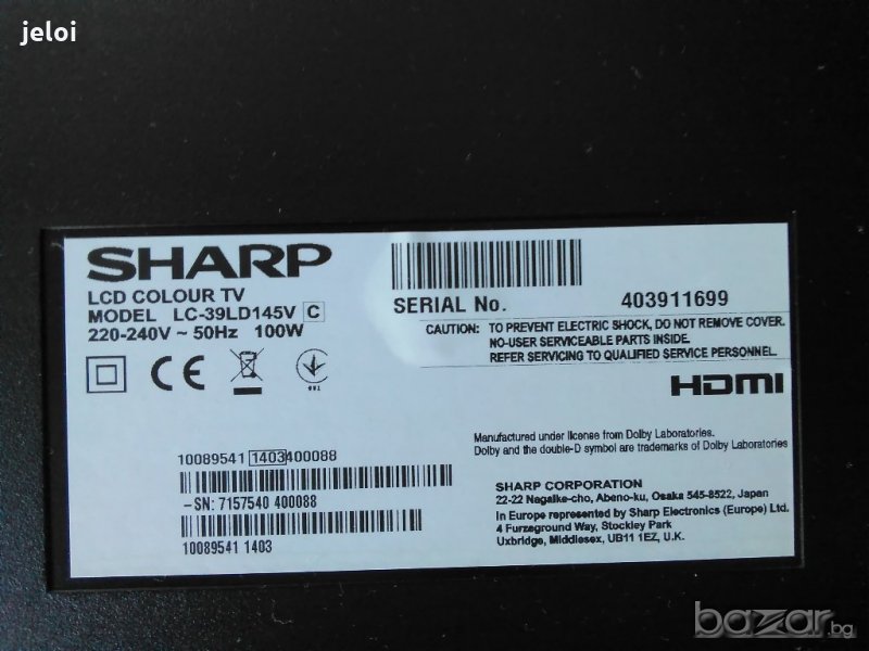Sharp LC-39ld145v, снимка 1 - Части и Платки - 21195642 Sharp LC-39ld145v, снимка 2 - Части и Платки - 21195642 Sharp LC-39ld145v, снимка 3 - Части и Платки - 21195642 Sharp LC-39ld145v, снимка 4 - Части и Платки - 21195642 1/4