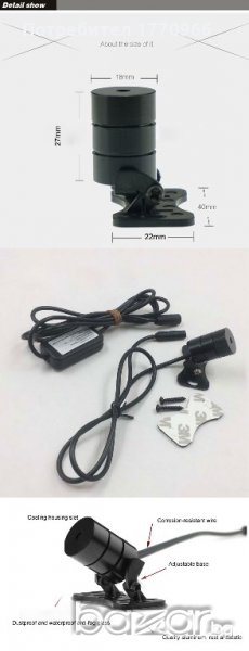 Размери на лазера: Диаметър-18мм, Дължина-27мм. Размери на планката за