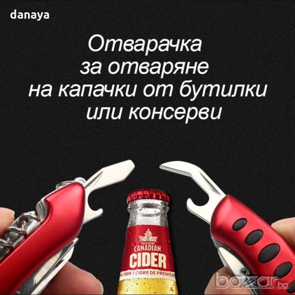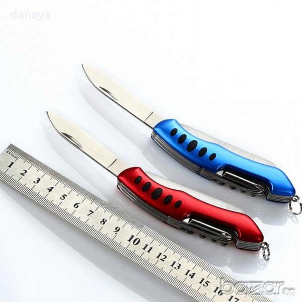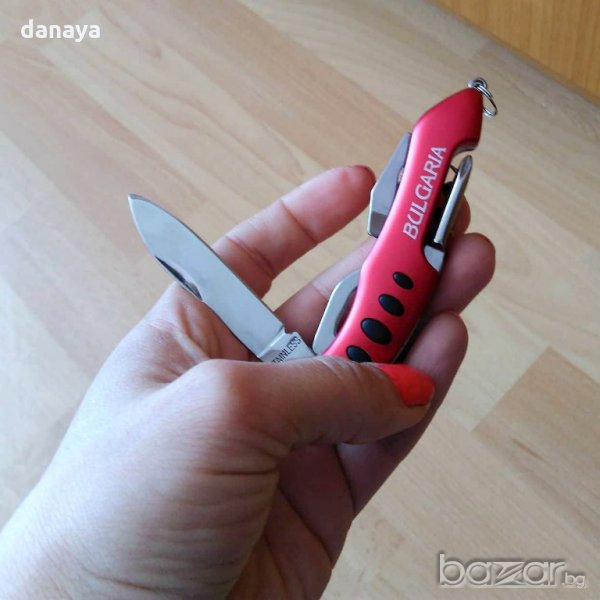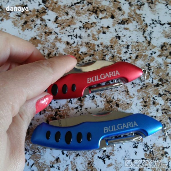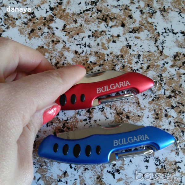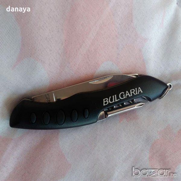 Мултифункционално джобно ножче с 5 елемента с надпис Bulgaria върху ножчето. Този сгъваем джобен нож е незаменим помощник при пътуване, къмпинг, риболов, градинарство, ремонти и други.