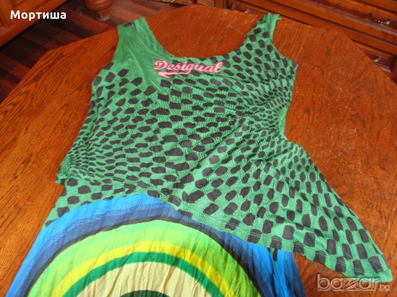 Великолепна оригинална рокля .асиметрична ,памук еластант с подплата Размер по етикет С но става и за М и Л Дължина 125 и 95 см ,мишници 46 см Без забележки ярки и наситени цветове Крайна цена без бартери