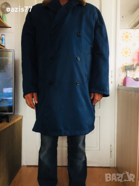 кожух. Производител Българска кожухарска индустрия – (БКИ – гара Искър, София).Цвят - тъмносин.