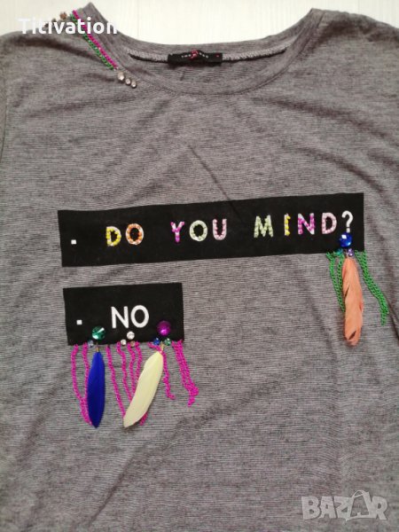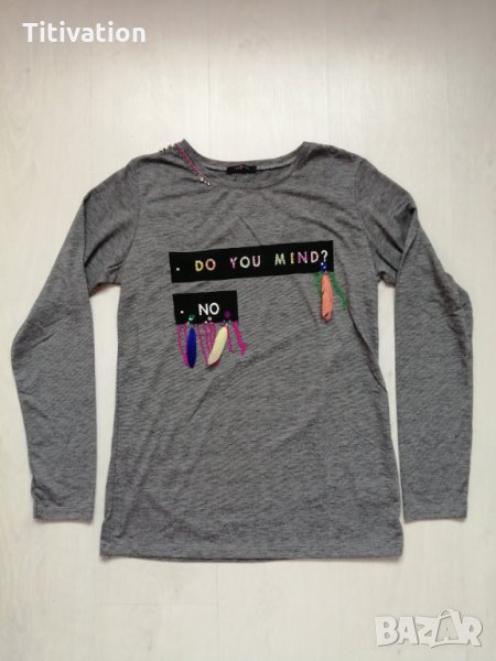 Нова дамска блуза с дълъг ръкав и апликации с пера. Размер Л., подмишници 46см., дължина 66см.