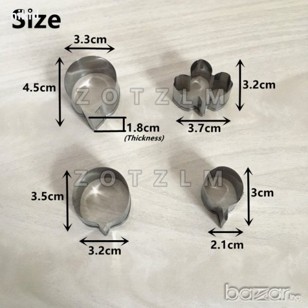 размери :3.7*3.2cm, 3.5*3.2cm, 3*2.1cm, , 4.5cm*3.3cm