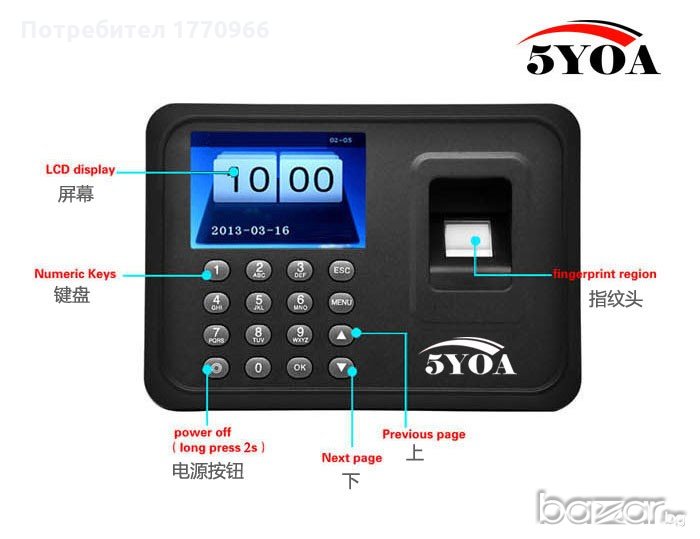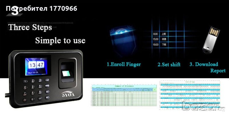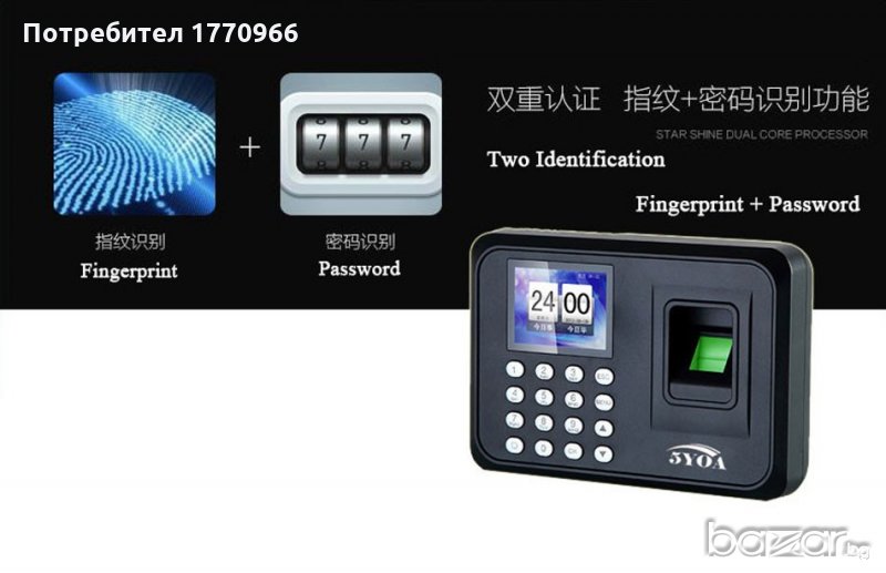 системи за сигурност. Пръстови отпечатъци Капацитет 1000. Цена: 190 лв