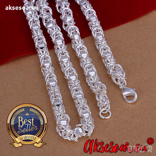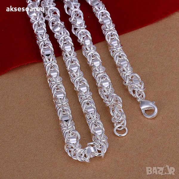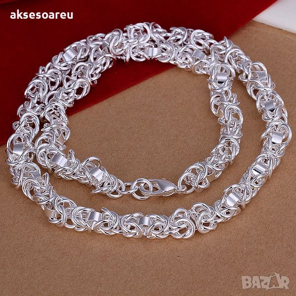 Посребрен сребърен ланец масивен плетка бижу верига мода колие синджир подарък
