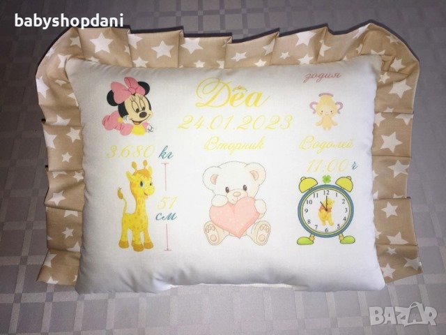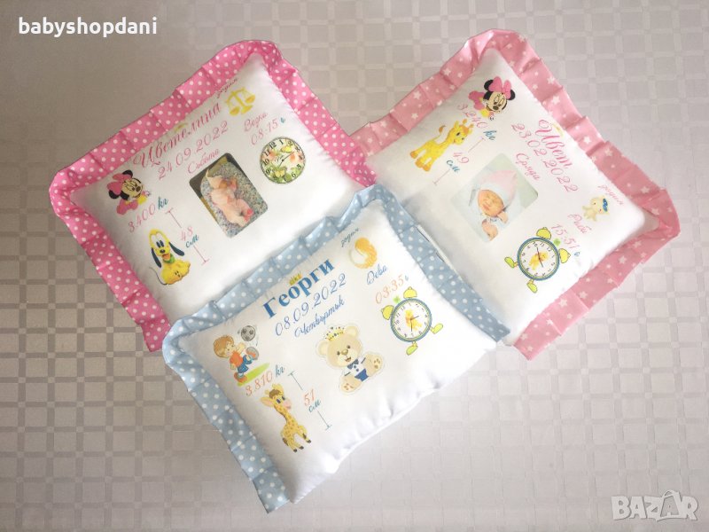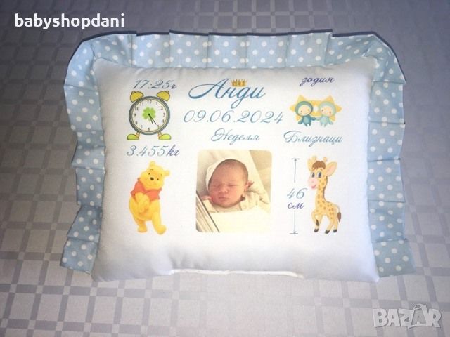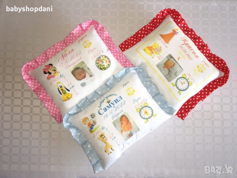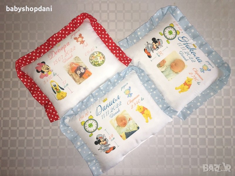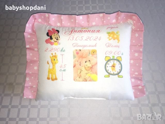 #декоративна #персонализирана #възглавничка #визитка #подарък #за #новородено #бебе #раждане #бебешкапогача #рожден #ден #прохождане #прощъпулник #кръщене #онлайн #поръчки #сублимация #снимка #персонализирани #възглавнички #бебешкавизитка